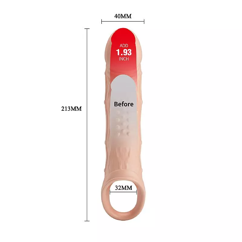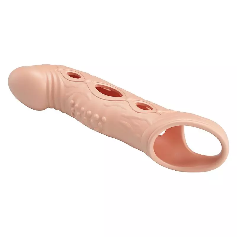 Capa peniana extensora com anel para escroto, feita em silicone com