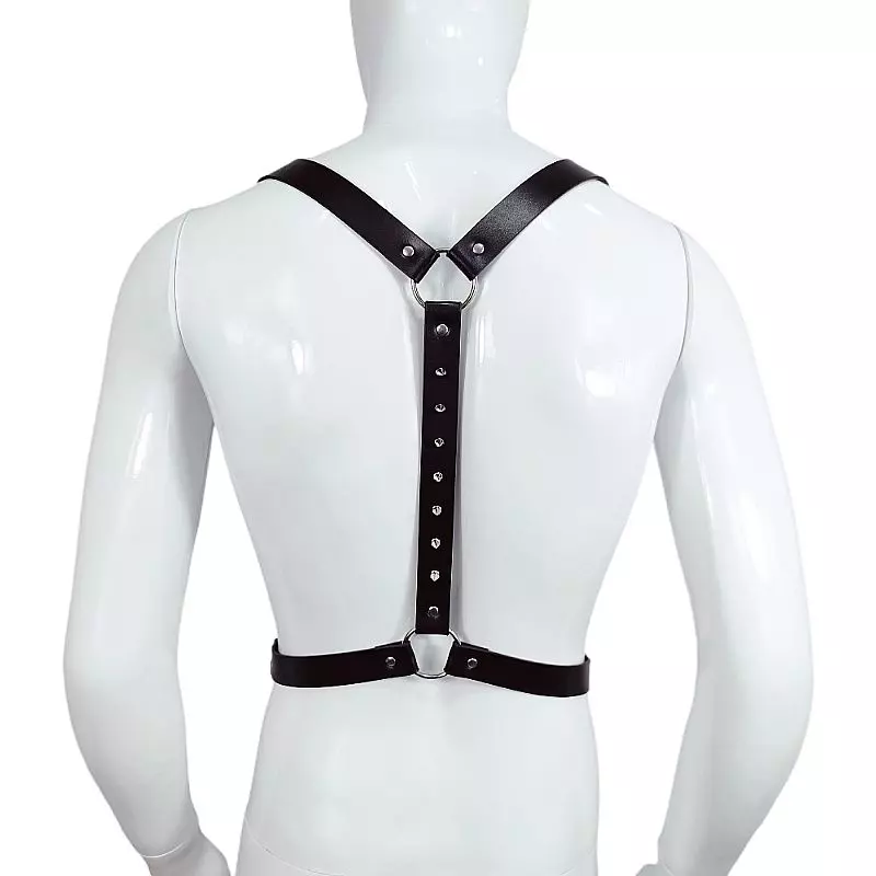 Cinta para peito masculino com spiker nas costas - confeccionadas em couro sintético com detalhes em rebite, fivelas para